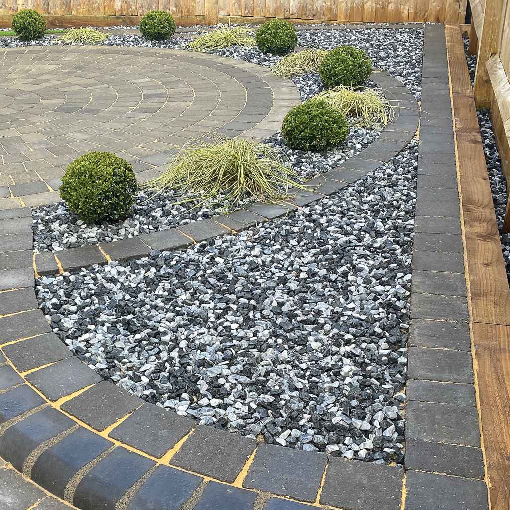 Black Ice Gravel is a premium grade decorative stone that comes as a mixture of dark basalt chippings and other lighter stones. It is this contrast between light and dark which enables the gravel to create a striking background for a variety of garden designs. The diameter of the pebbles is between 14-20mm, making it ideal for driveways and other applications where a strong base is required.