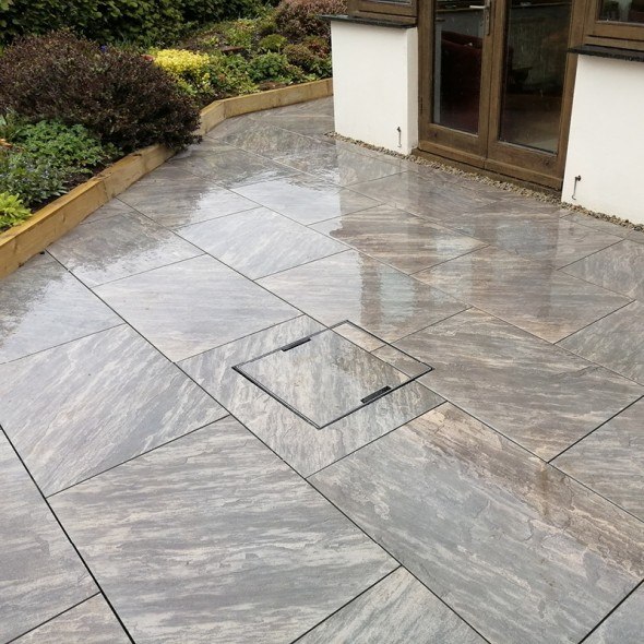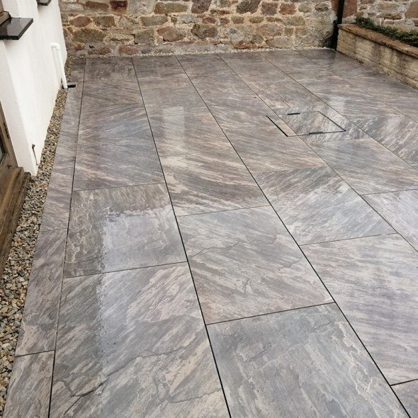 All of our porcelain paving has an R11 slip rating, meaning that it is slip resistant even when wet, making it perfect for outdoor patios which are exposed to the elements.